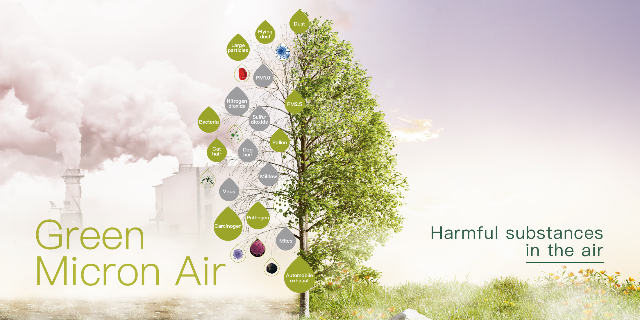 Filter particulate matter of PM2.5 and the ones within PM1.0,anti-virus, anti-mold.